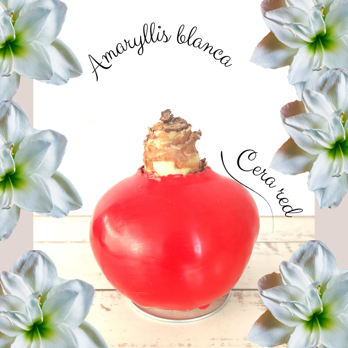 Base de cera de color rojo con flor de color blanca.