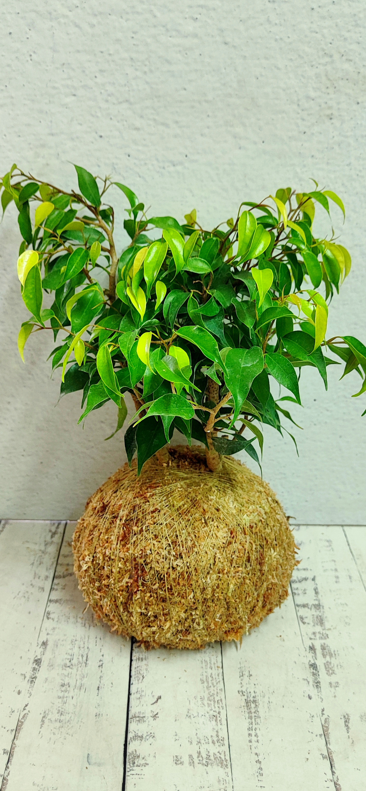 Plantas con macetero natural hecho a base de musgo, disminuye el riego (solo 2 veces al mes). Incluye indicaciones de riego y bolsa de regalo. Mide 35 cm de alto aprox por 35 cm de ancho.